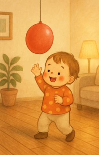 - 처음엔 풍선을 너무 높이 매달지 말고, 아이가 쉽게 닿을 수 있는 높이로 조절해 주세요.