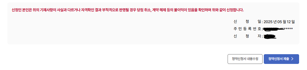 7. 한번 더 인적사항 확인 후 청약신청서 제출 (인증서 필요)