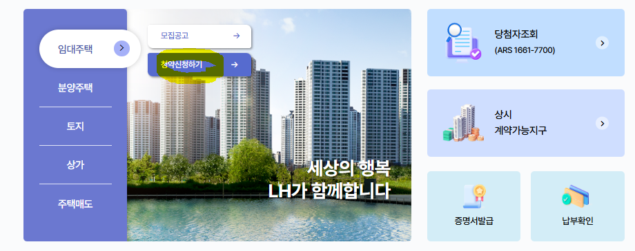 - 임대주택 클릭 후 '청약신청' 클릭