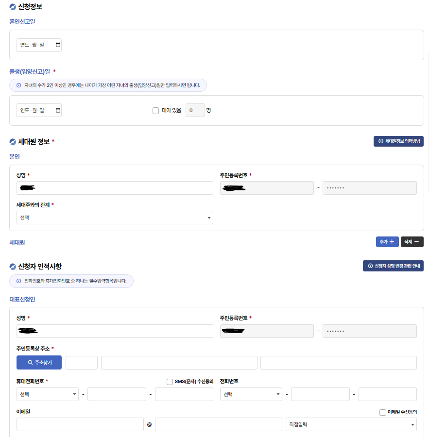 6. 세대원 정보 및 인적사항 기입 후 제출